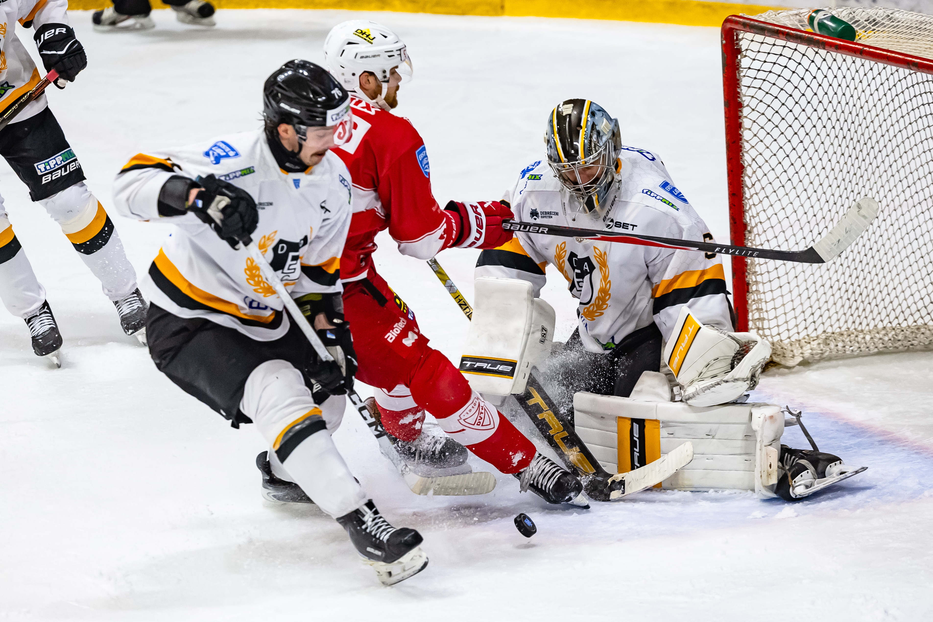Nem igazán találta a kapusokon a fogást a DVTK és a DEAC párharc harmadik mérkőzésén. Mindkét félnek akadt helyzete már az első harmad során, de Tóth Balázs és Hetényi kapuja bevehetetlennek tűnt. A játék felénél akadt egy rés a debreceni hálóőr pajzsán, amit gólra is váltott a DVTK, azonban alig öt perccel később egyenlített a DEAC, méghozzá egy hátrányos góllal. Ezt követően viszont visszahúzták a falakat, és hiába minden igyekezet, a legtöbb ellőtt korong vagy a kapuvason csilingelt, vagy a kapusoknál végezte, így jöhetett a hosszabbítás.